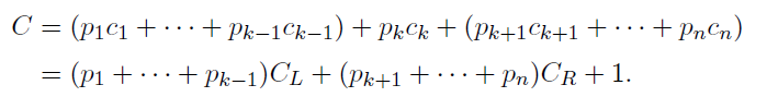 왼쪽 서브트리가 선택될 확률 x 왼쪽 서브트리의 평균 키값 비교 횟수