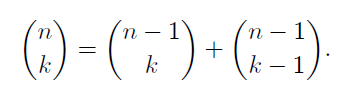 파스칼의 삼각형에 따르면 이항 계수는 아래와 같은 성질을 지닌다.