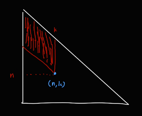 사실 (n, k) 값을 구할 때 필요한 영역은 더 좁다.
