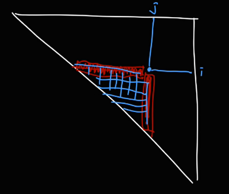 (i, j) 의 값을 구하기 위해서는 빨간색 영역의 값들이 필요하다.