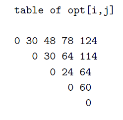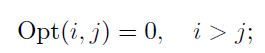 opt(i, j) 를 메모이제이션 기법으로 기록하면서 연산할 텐데, 이에 대해 i, j 를 각 축으로 하는 표를 채우면