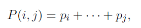 이를 보기 쉽게 i부터 j까지 확률의 합을 P(i, j) 라고 하자.
