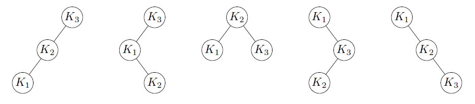 그리고 왼쪽 서브트리에는 K1 .. Ki-1 의 키가 들어있고, 오른쪽 서브트리에는 Ki+1 .. Kn 의 키가 들어있다.