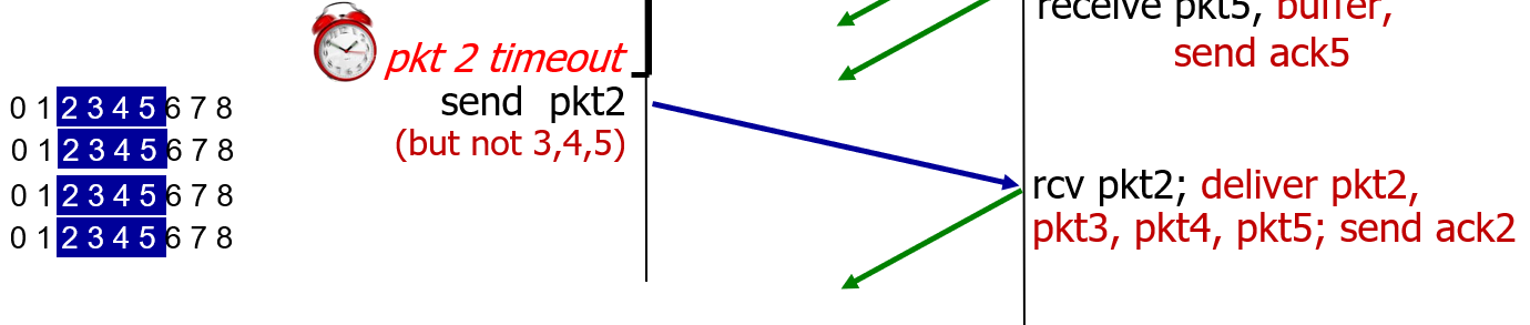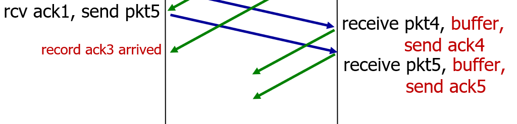 단, Go-Back-N 과 달리 pkt3, pkt4, pkt5 는 재전송하지 않는다!!
