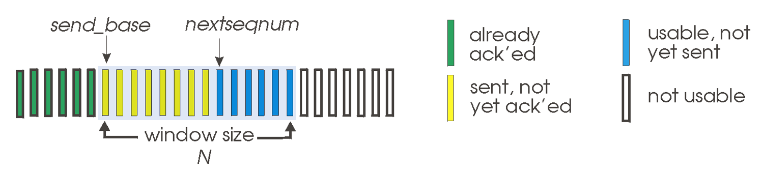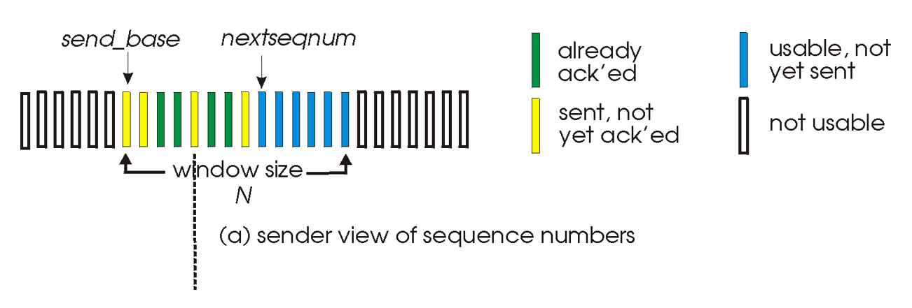 만약 그 값이 N 이었다면 센더는 N이하의 값은 잘 받았다고 인지하고, 윈도우의 send_base는 n+1 위치로 바뀌도록 슬라이딩한다.
