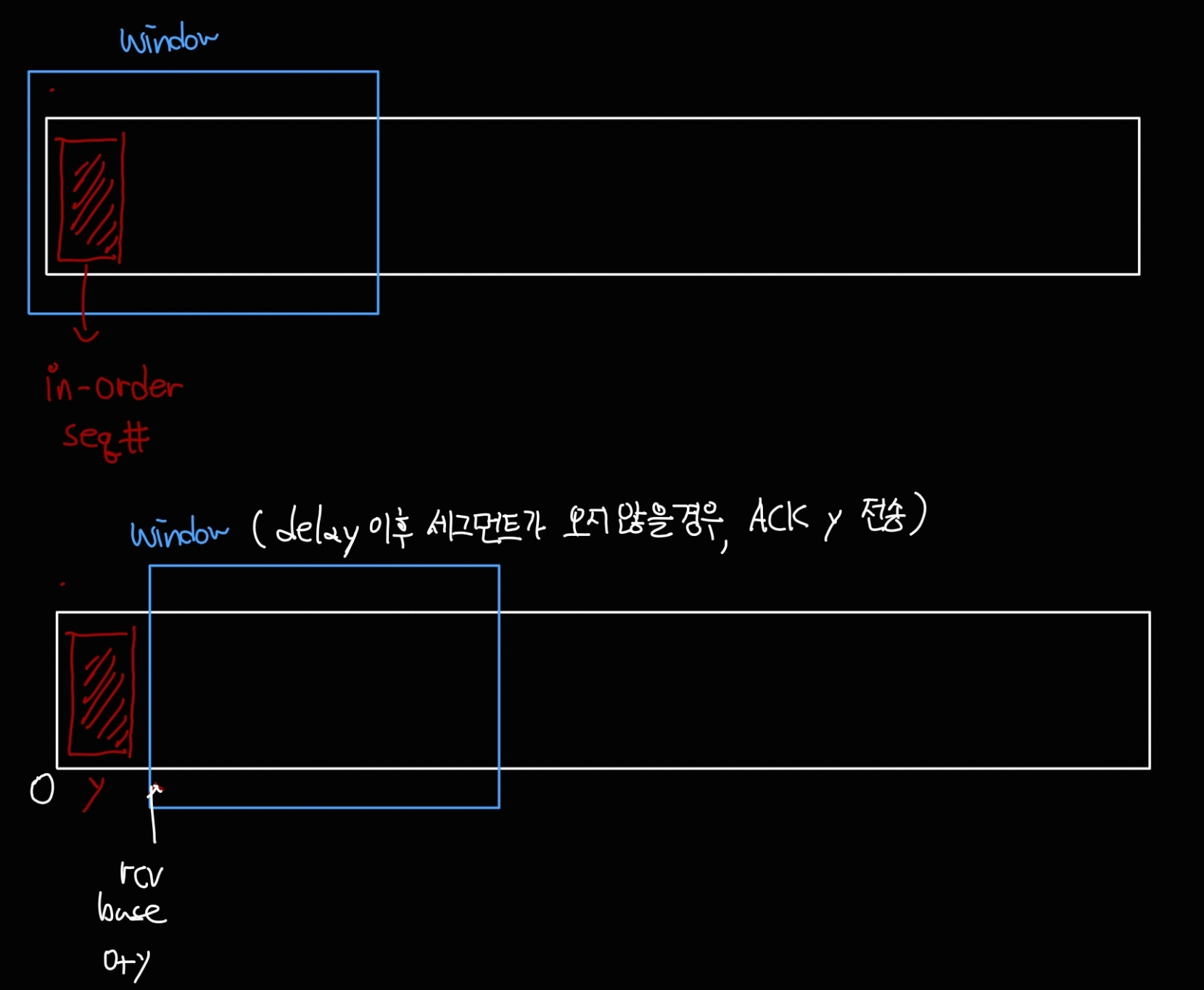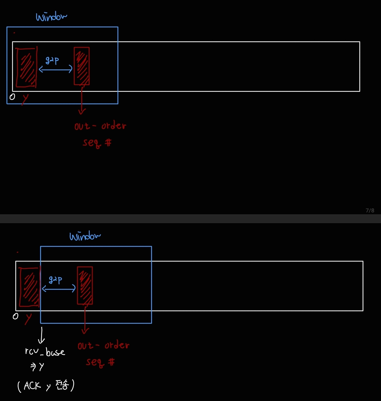 이때 보내는 ACK는 갭을 채우고, 슬라이딩한 후에 남아있는 gap의 낮은 번호 끝을 가리킬 것이다.