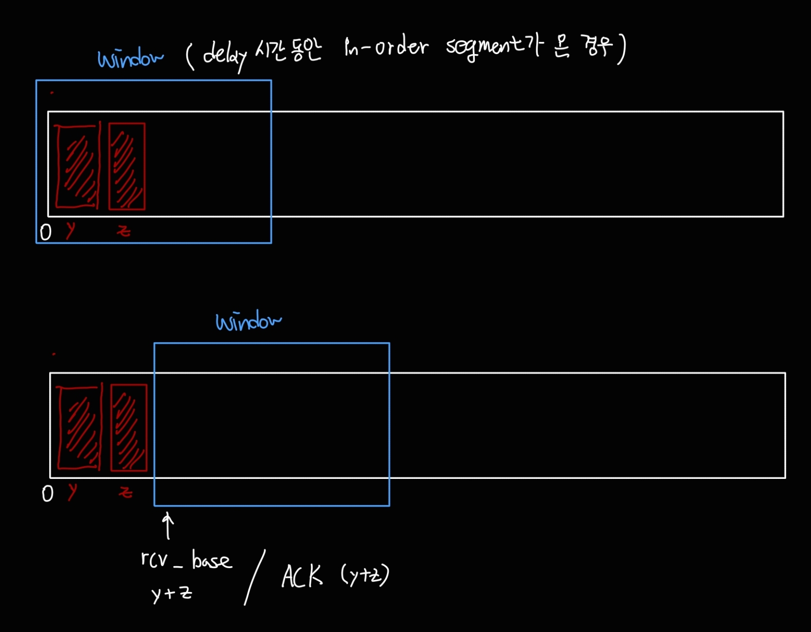 이때 그 gap을 완전히 또는 부분적으로 채우는 세그먼트가 도착하면, TCP는 즉각적으로 ACK를 보내면서 윈도우를 슬라이딩한다. 그러면 추가로 윈도우에 공간이 생기기 때문에, 그 추가된 공간을 sender에게 알려줄 수 있다.
