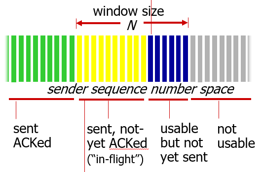 따라서 위 이미지와 같은 상황이 되기 위해서 receiver 가 보낸 ACK 번호는 노란색 영역의 첫번째 바이트에 해당하는 번호가 된다.