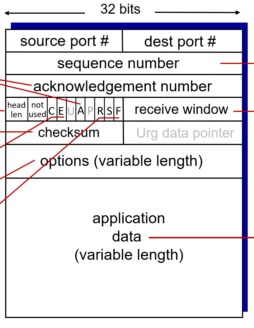 application data 부분은 가변 길이를 갖고 있고, 그 위쪽이 TCP 헤더의 내용이다.