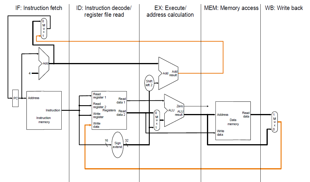 주황색 데이터패스는 자신의 단계를 역행해서 이전 단계로 넘어가는 경우를 나타낸다.