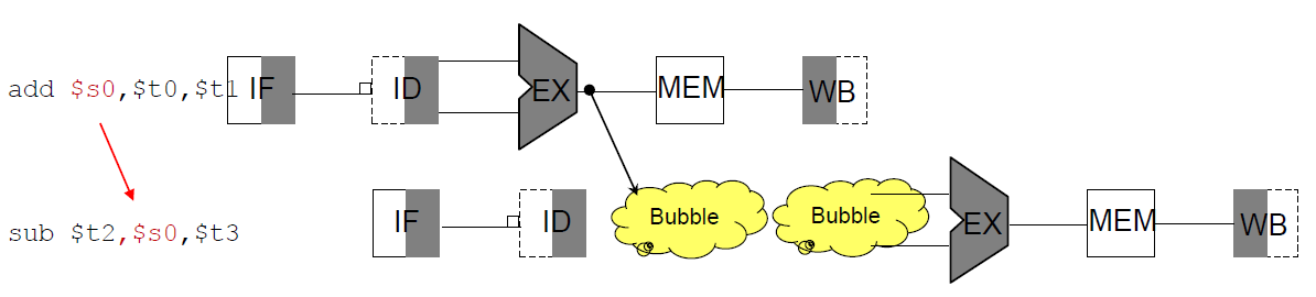 하지만 이렇게 지연을 주게 되면, 문제는 해결할 수 있지만 sub 명령어를 실행하는 response time 은 2cycle만큼 늦어지고 이는 CPU 성능의 감소로 이어진다.