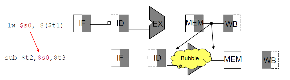 이때는 stall이 발생하므로 1cycle이 추가적으로 소모된다.