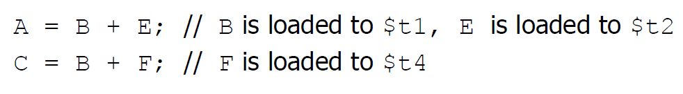 먼저 첫번째 경우, B, E를 lw 로 가져오고 그 값을 더해서 A를 구하여 저장하고,