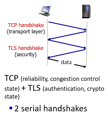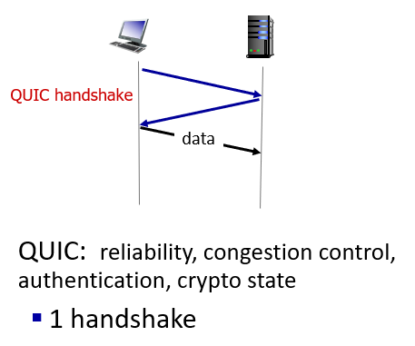 TCP에서 연결 설정을 함으로써 얻을 수 있었던 이점(신뢰성, 혼잡 제어, authentication, encryption 등)을 QUIC에서 사용하겠다는 것. (TCP, TLS가 제공하는 기능을 QUIC에서 모두 제공)