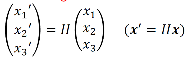 이제 Homography를 H 라고 할 때, 점을 변환하는 경우는 위와 같이 쓸 수 있다.