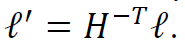 이를 통해 어떤 직선에 대해 H 라는 homography를 적용한 직선은