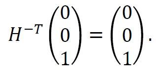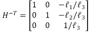 따라서 H의 전치의 역행렬은 위와 같이 나타낼 수 있으며, 무한대의 점을 이 행렬에 곱해보면