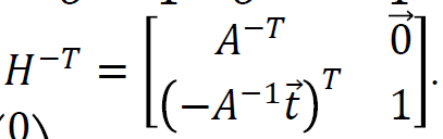 어떤 직선을 변환할 때는 H의 역행렬의 전치가 필요하다.
