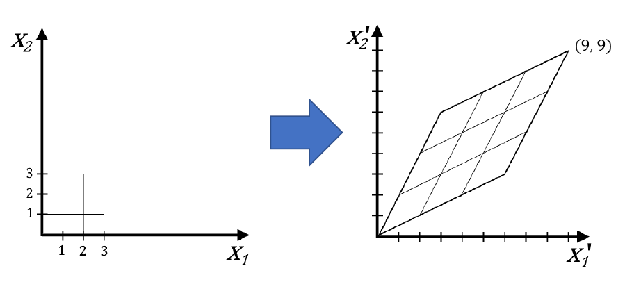 어떤 변환의 결과로 나온 점 x' 을 위와 같이 표현할 때,