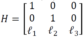 아래와 같은 변환을 사용하면 소실선을 무한대 점들로 구성된 직선으로 만들 수 있다.