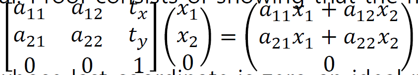 따라서 아핀 변환은 무한대 직선을 무한대로 변환한다.