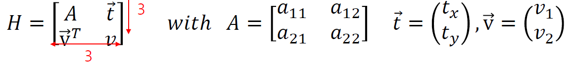 그런데 어떤 행렬에 스칼라를 곱한 행렬은 homography 관점에서는 모두 동일한 homography이다.