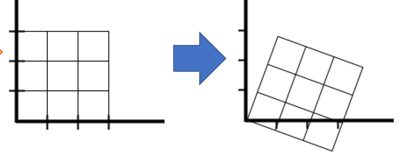 아핀 변환이 평면을 어떻게 변환시키는지 보기 위해, tx, ty 에 모두 0을 넣어보자.