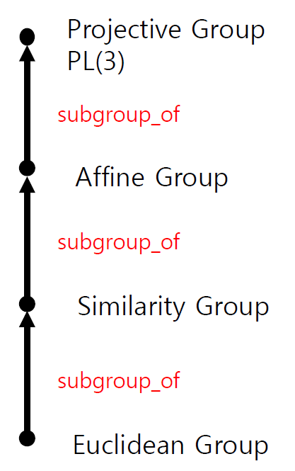 이제 Affine Group, Similarity Group, Eucliean Group 에 대해 정리해보자.