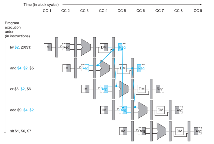 간단히 복기해보면, -20 이라는 값으로 실제 업데이트 되는 것은 CC 5 이지만, -20 이라는 값을 실제로 얻는 시점은 CC 3 에서도 이미 얻은 상황이다. 따라서 이때 얻은 값을 곧바로 다음 사이클에 넘겨주어서 쓸 수 있도록 하는 것이 포워딩이다.