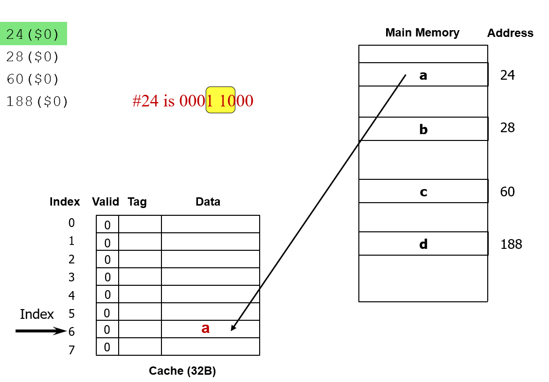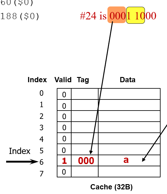 이 규칙은 메모리 블록주소의 하위 3개 비트를 보면 알 수 있다.