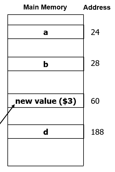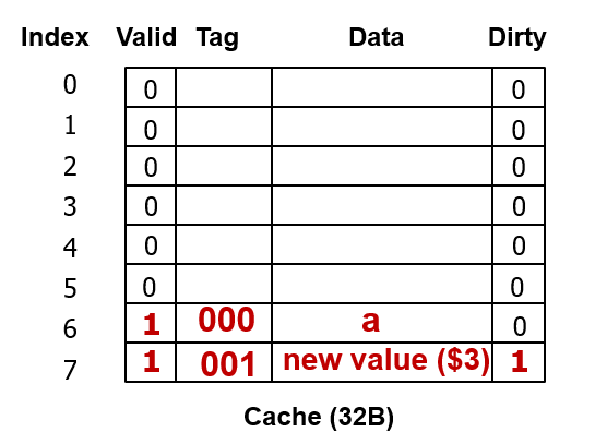 왜냐하면 캐시에는 $3의 값이 새롭게 들어있고, 아직 메모리에는 이 값이 동기화되어 있지 않기 때문이다.