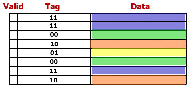 그리고 이곳에 저장된 데이터가 메모리의 실제 어떤 구역(색상)으로 매팽되는지는 Tag를 통해 알 수 있다.