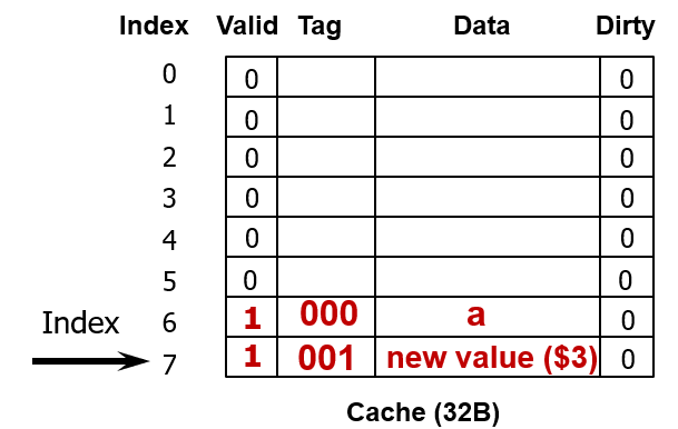 왜냐하면 캐시에는 $3의 값이 새롭게 들어있고, 아직 메모리에는 이 값이 동기화되어 있지 않기 때문이다.
