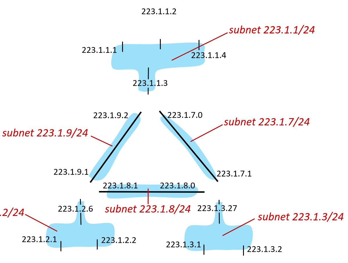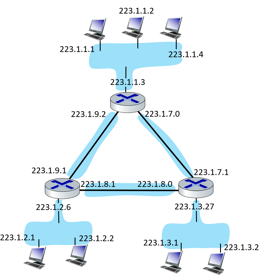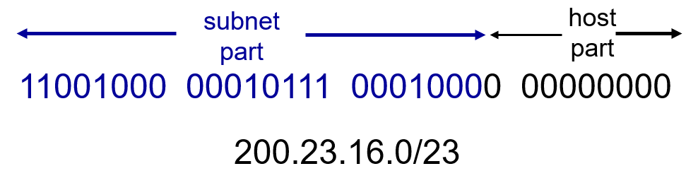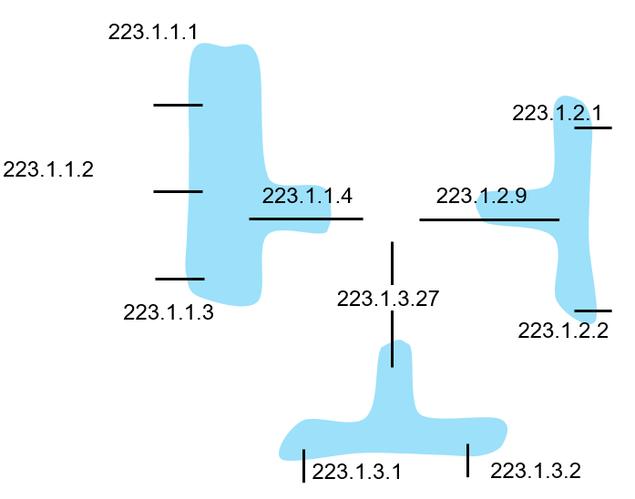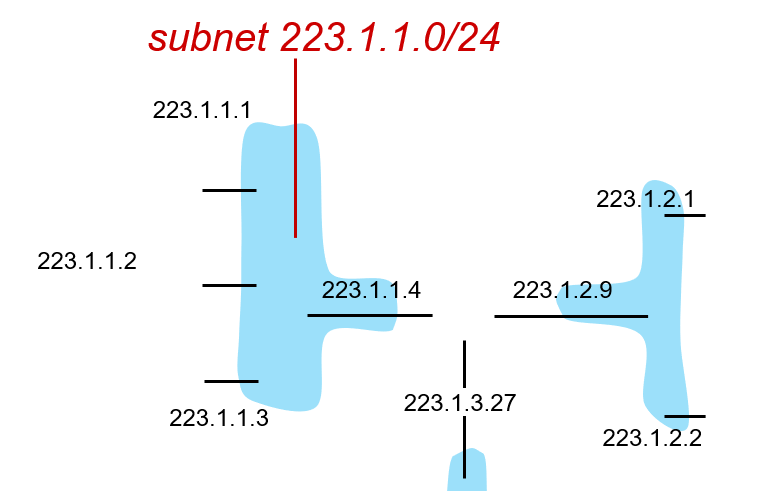 위 표시는 223.1.1 까지 24bit가 공통인 서브넷 네트워크를 나타낸다. (뒤의 0은 어떤 값이나 와도 된다는 뜻)