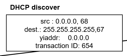 이 네트워크에 처음 접근하는 클라이언트는 우선 DHCP 서버를 찾기 위해서 broadcast로 DHCP discover 요청을 보낸다.