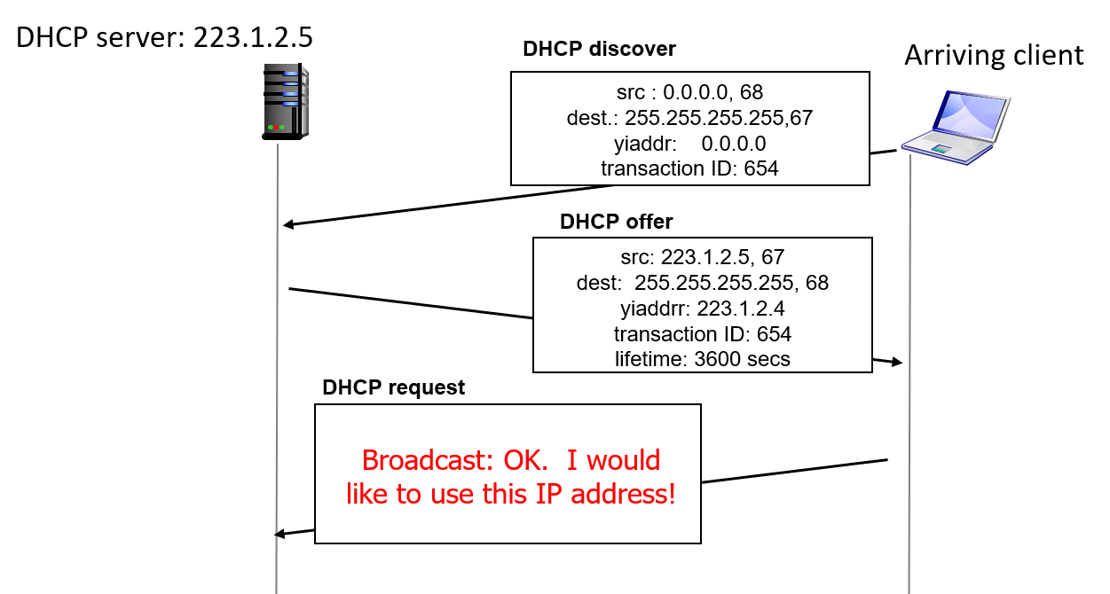 DHCP가 아닌 호스트는 이 요청을 무시할 것이고, DHCP 서버는 이를 받아서 어떤 응답을 보내줄 것이다.
