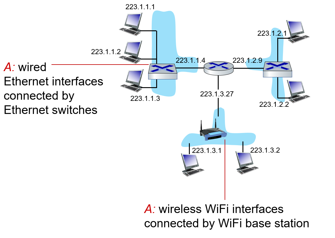 인터페이스는 host나 라우터같이 우리가 보통 '컴퓨터'라고 부르는 장치와 그 장치가 네트워크와 연결되는 지점 (그 장치에 연결된 물리적 네트워크, physical link 의 연결 지점) 이다.