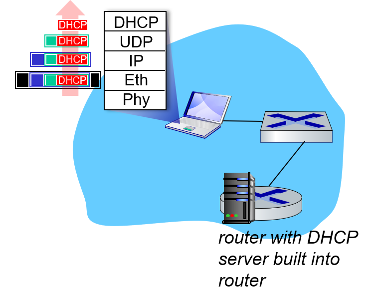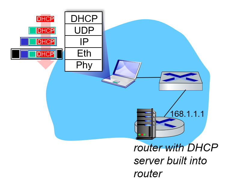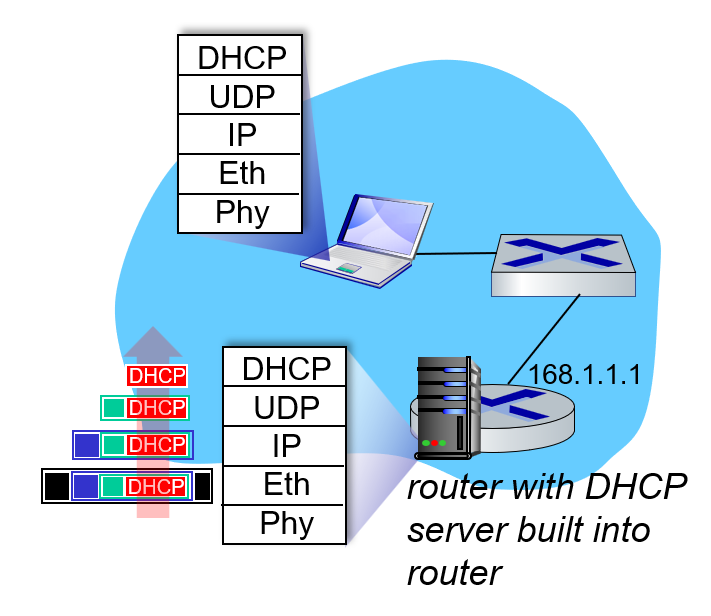 이때 이더넷 프레임은 브로드캐스트되어 DHCP에 전달된다. (데이터링크 계층의 브로드캐스트, 이때도 목적지가 모두 1이다.)