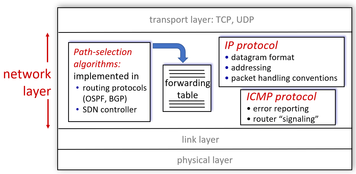 또 Path-Selection algorithms 도 네트워크 계층에 속한다. (이 알고리즘은 분산 알고리즘이다.)