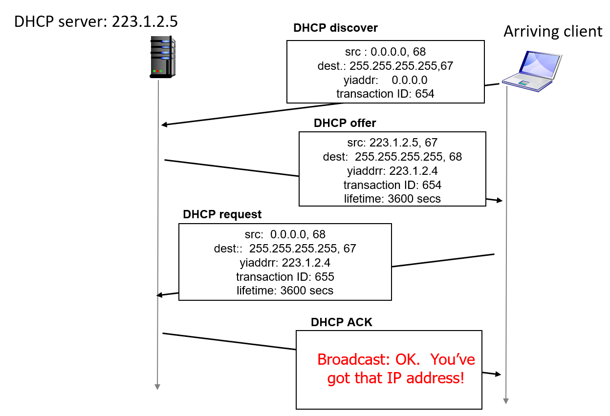 IP주소 뿐만 아니라, first router 정보, DNS 서버 정보도 같이 요청한다.