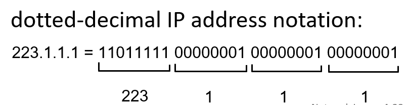 위 표시는 223.1.1 까지 24bit가 공통인 서브넷 네트워크를 나타낸다. (뒤의 0은 어떤 값이나 와도 된다는 뜻)