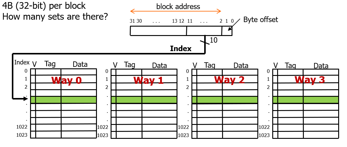그리고 각 way가 연결된 캐시 블록의 집합을 set 이라고 한다.