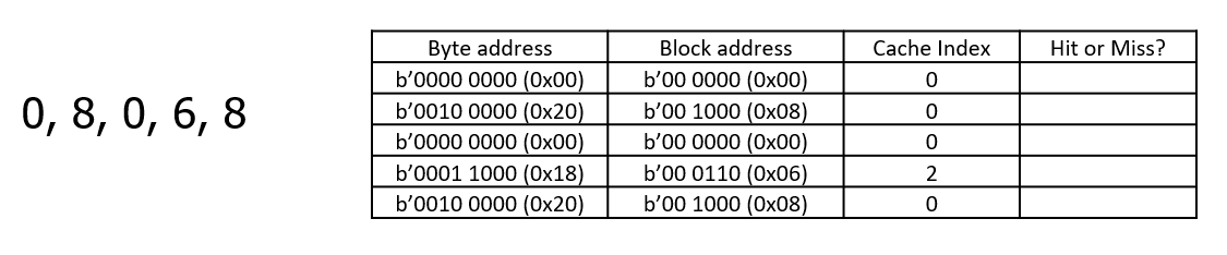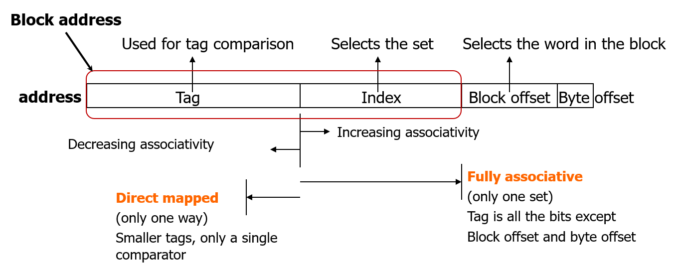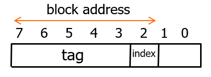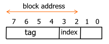 메인 메모리의 블록이 갈 위치는 block address 에서 인덱스를 나타내는 하위 비트를 보고 매핑한다.