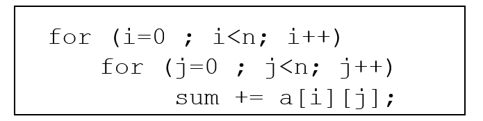 이 코드를 아까 본 것처럼 row major ordering에 맞게 바꿔주면 cache friendly하게 작성되었다고 볼 수 있다.