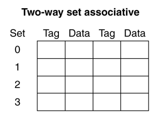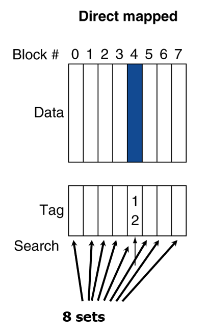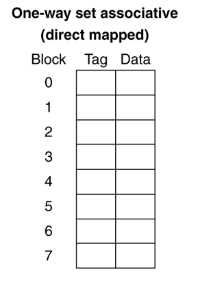 그래서 Hit rate 를 끌어올리는 다른 테크닉으로 Direct mapped Cache 대신 다른 캐시 구조를 사용하는 방법이 있다.