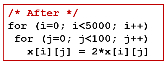 Loop Interchange 는 중첩 반복문에서 내부 반복문과 바깥 반복문을 서로 바꿔서 반복문을 도는 것을 말한다.