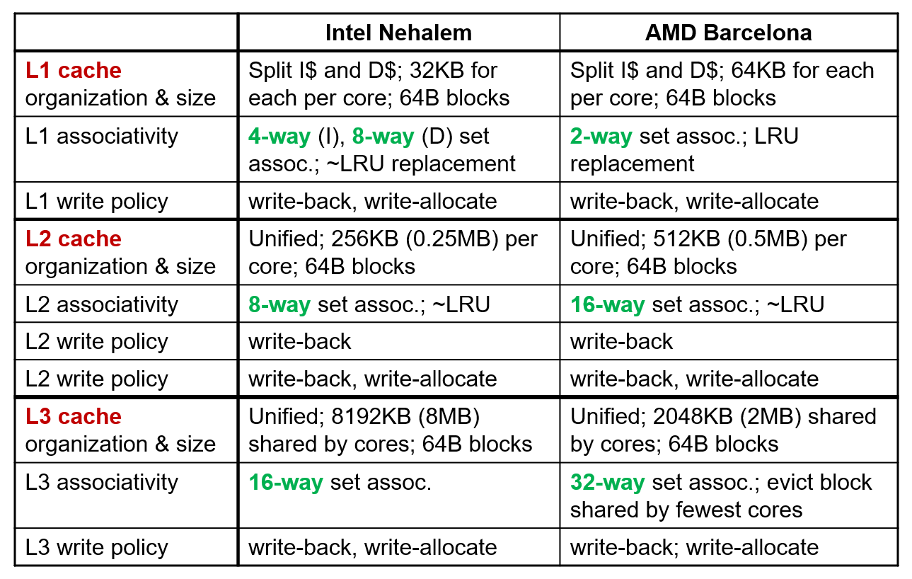 AMD는 2-way 로 설계해서 완벽한 LRU를 구현한 경우도 있지만, 그 밑에서 way가 늘어나는 경우 ~LRU로 구현하였다.