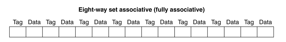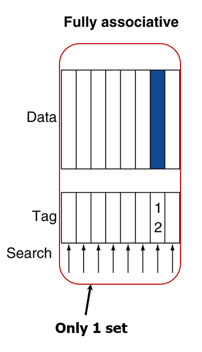 자신이 갖고있는 모든 캐시 블록을 하나의 셋으로 묶어두고, 그 set으로 접근할 수 있는 8개의 way를 둔다.