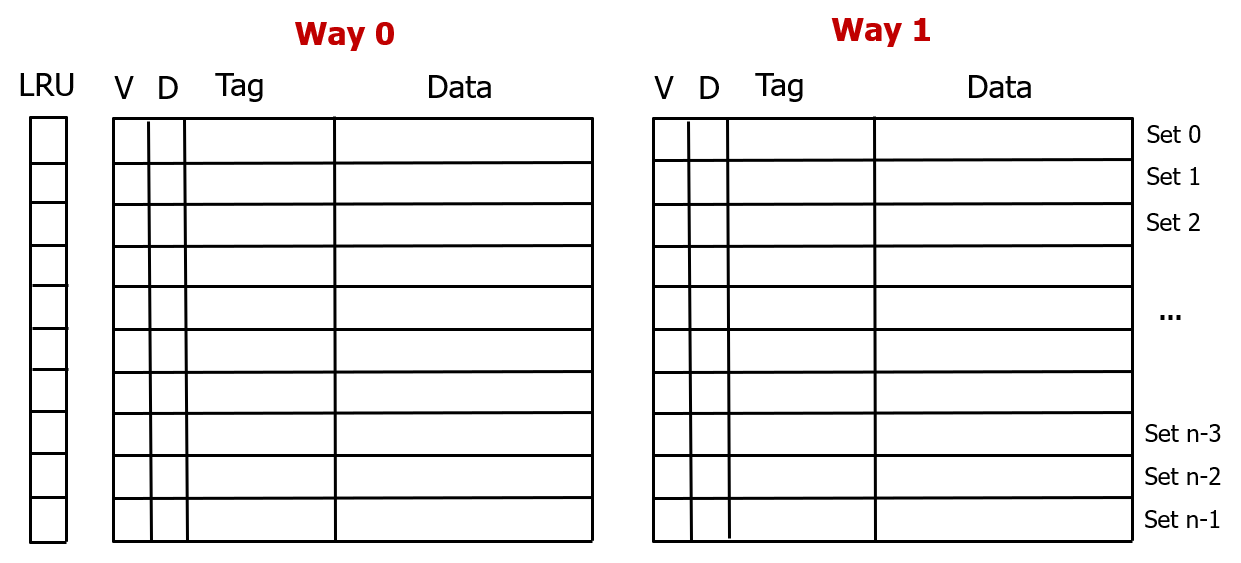 set associative cache 형태로 디자인한다.