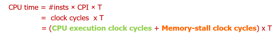 = (CPU execution clock cycles + Memory-stall Clock Cycles) x (T)